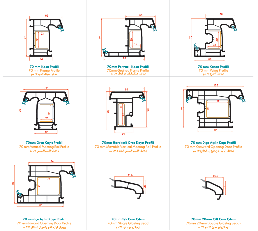 - Tekli, çiftli ve üçlü cam çıtaları ile farklı yalıtım çözümleri sunar.